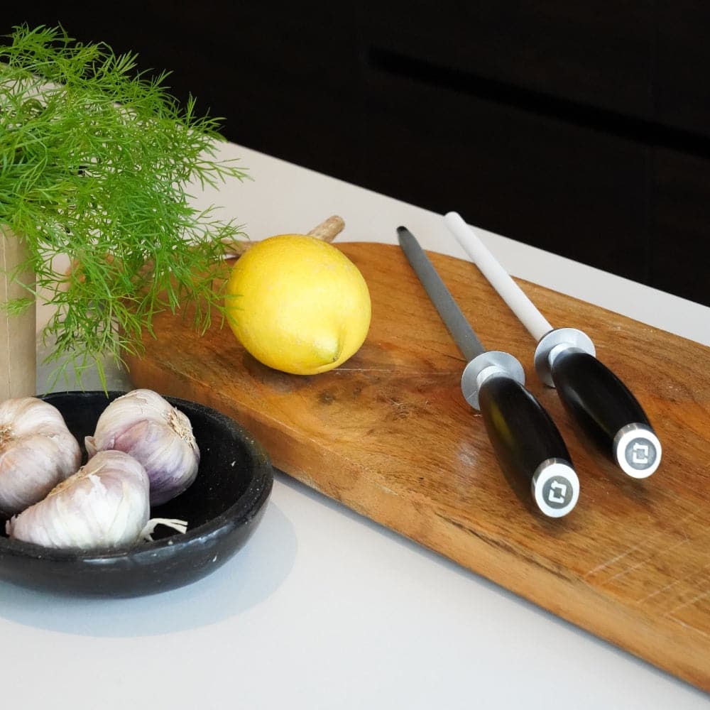 Med dette sæt får du både et keramisk og et diamant strygestål – og dermed alt, du skal bruge for at holde dine knive skarpe og velfungerende i mange år frem.